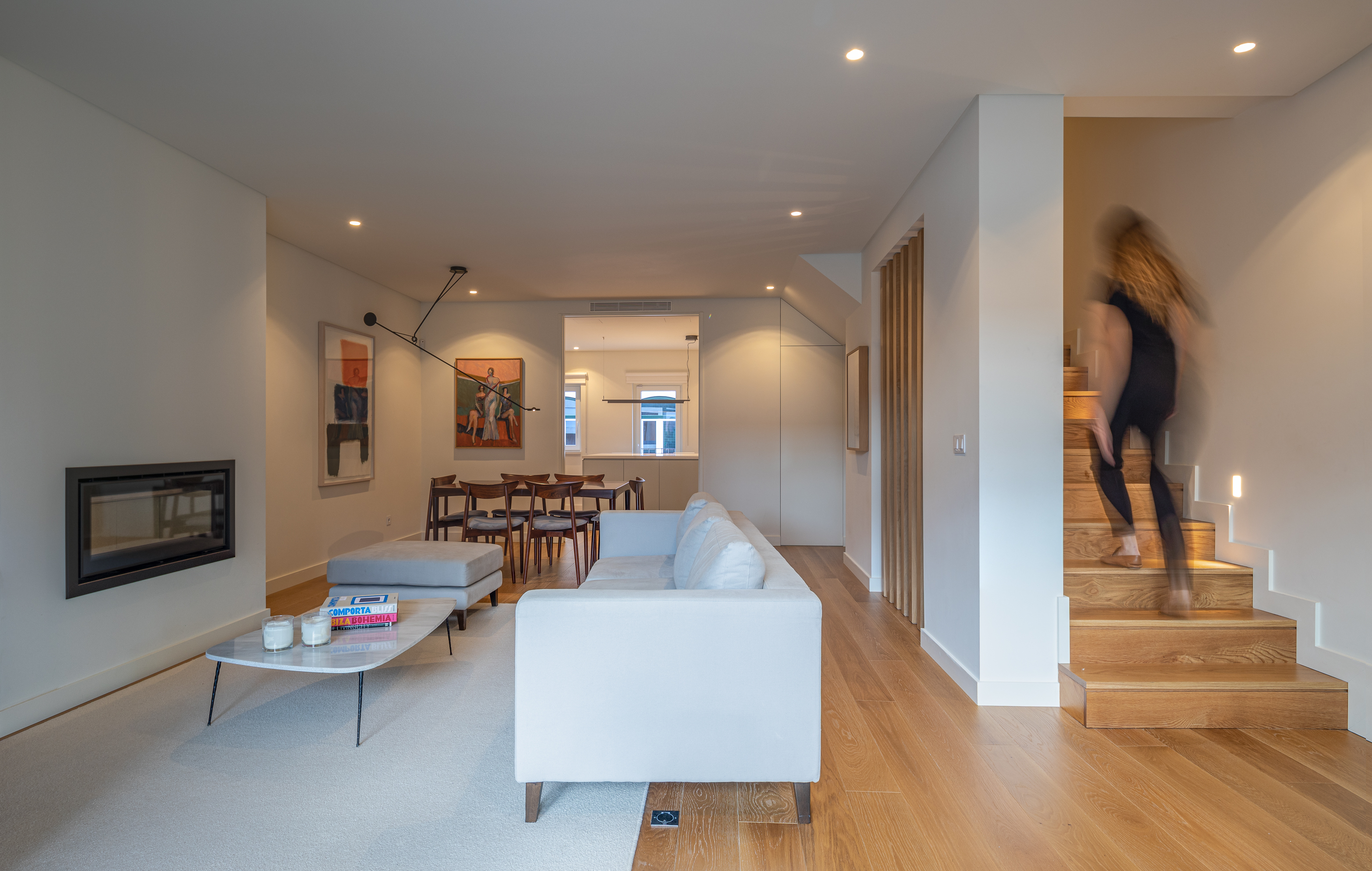 Estrela is an area of Lisbon with its own particular characteristics and style. Some recent constructions show modern lines that contrast with other more traditional buildings, giving the area an element of architectural variety without jeopardising its visual harmony, revealing an increasing process of urban rehabilitation. The main concern with this project was creating a strong balance between a cosmopolitan space and place of refuge for a family. Making the most of the original characteristics of the external walls and the metrics of the window and door openings – adapting them to suit contemporary use, optimisation and health requirements – we transformed a multi-family building into a family home. Externally, the main façade is clad in rectangular green tiles, above a limestone base. To the rear, a more contemporary approach is adopted, with larger window and door openings and the creation of a courtyard and balconies, carefully arranged to preserve the safety and privacy of those who live there.